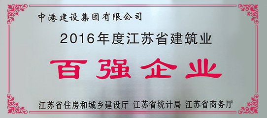 中港建設集團有限公司榮獲 “2016年度江蘇省建筑業百強企業”榮譽稱號